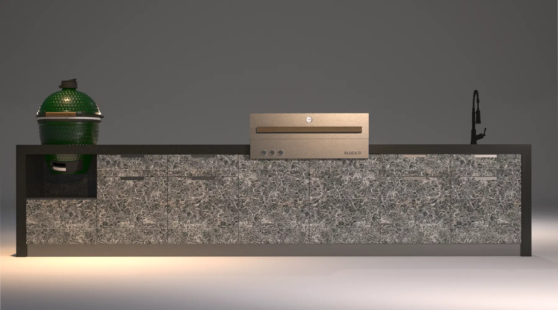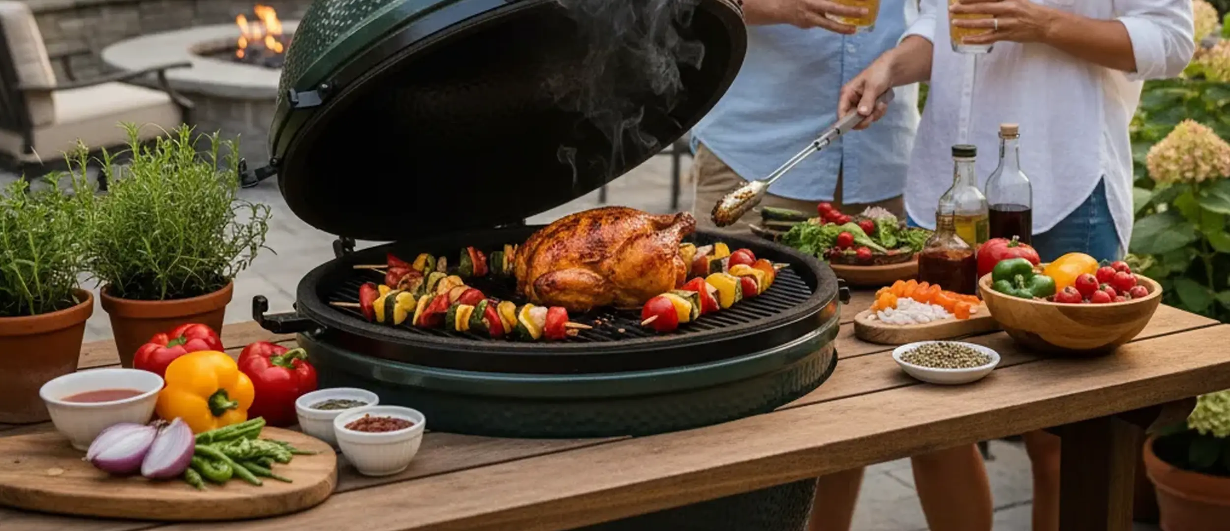 Abgerundet wird das Konzept durch ausgewählte Premium-Grillgeräte – ob ein Big Green Egg, kombiniert mit einem AZADO Grill, oder ein hochwertiger Einbau-Gasgrill von Flammkraft. Wir bieten Ihnen die passende Lösung für jedes Kochkonzept.