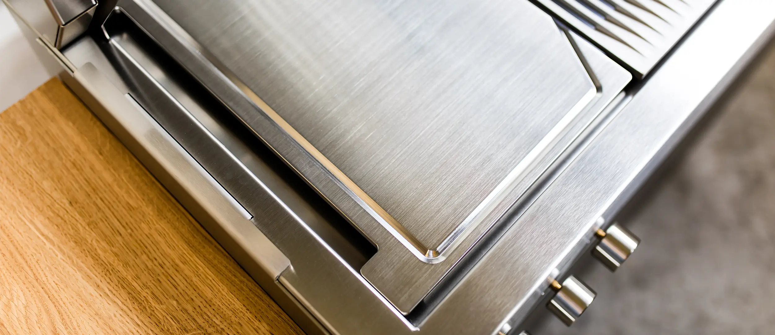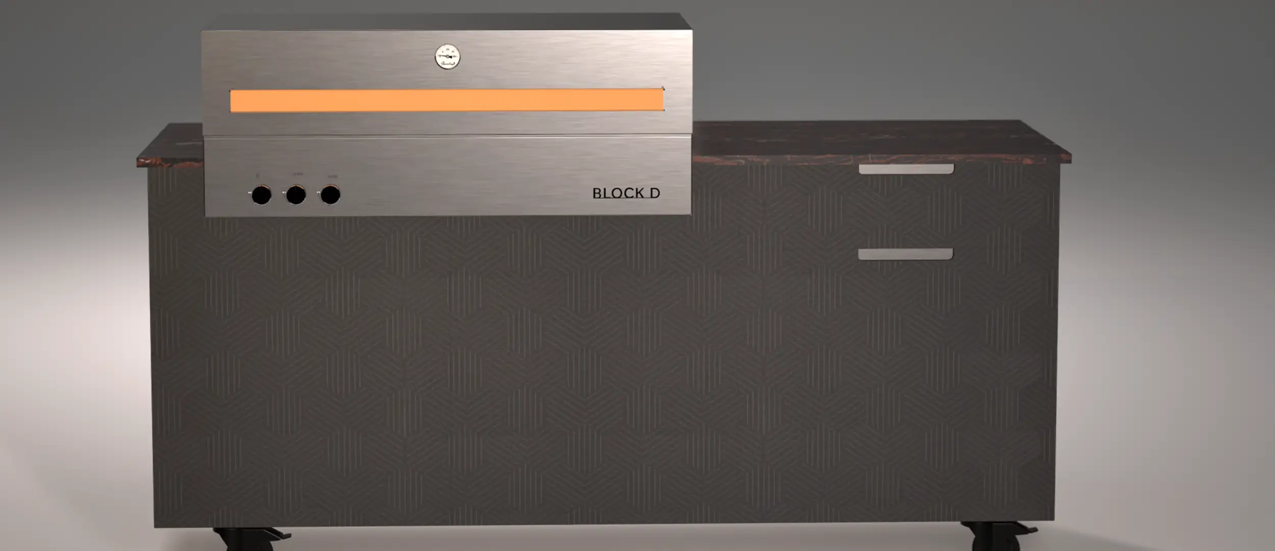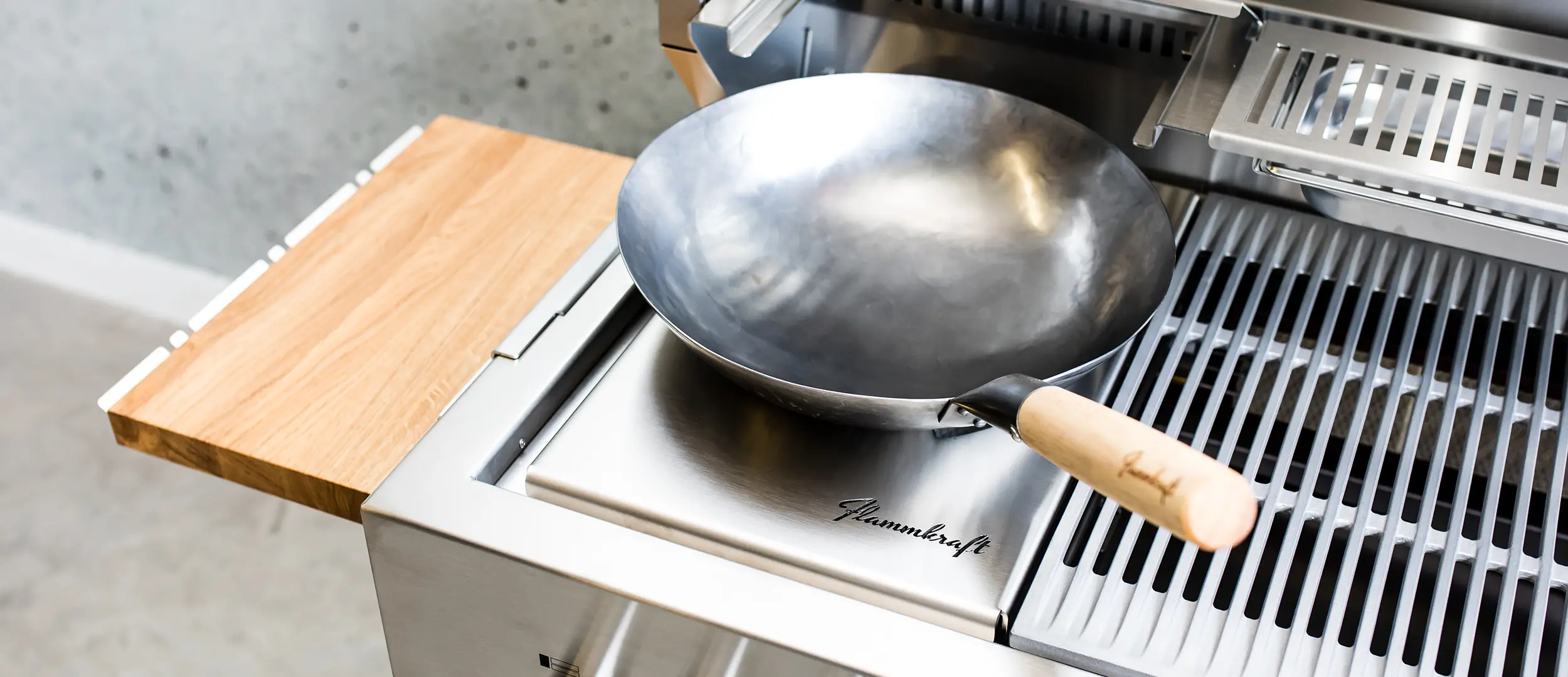 Im Zentrum steht eine hochwertige Innenausstattung aus geschliffenem Chromnickelstahl 1.4301, kombiniert mit individuell gestalteten Front- und Seitenverkleidungen. So entsteht eine einzigartige Outdoorküche, die Design und Funktionalität perfekt vereint.